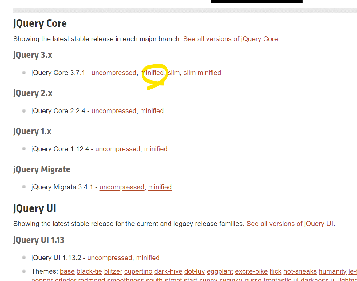 저는 가장 최신의 3.x의 minified를 다운받았어요!